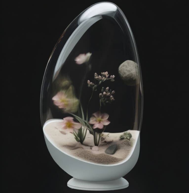 Can I have the flowers in terrariumCan I have the model by the waterCan I see this musician in IcelandCan I have this desert be rainingCan I have the view for kitchen